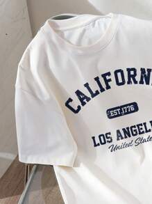 Tween Boy Casual Letter Graphic Round Neck Short Sleeve T-Shirt, Cotton Blend, Summer
