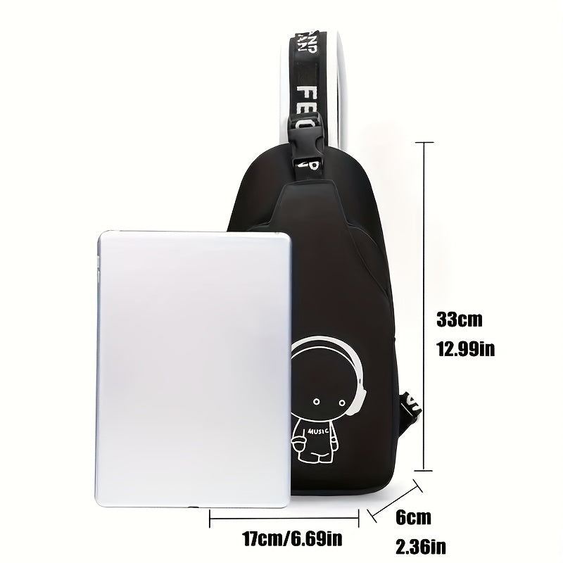 2pcs/set Large Capacity Simple Backpack, Cartoon Print Travel Backpack School Bag Crossbody Bag Chest Bag - Black is backordered and will ship as soon as it is back in stock.