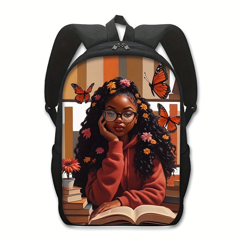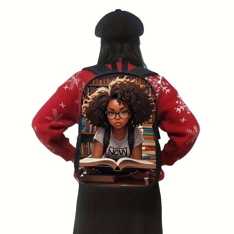 Chic Afro Girl Reading Nook Print Backpack - Lightweight, Durable Polyester School Bag with Detachable Straps for Teens & Students