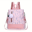 Pompom Decor Anti-Theft Travel Backpack Purse For Women - Floral Print Shoulder Bag - School Bag