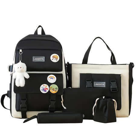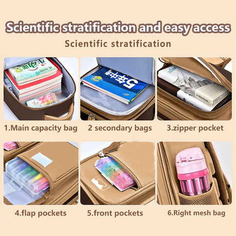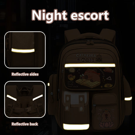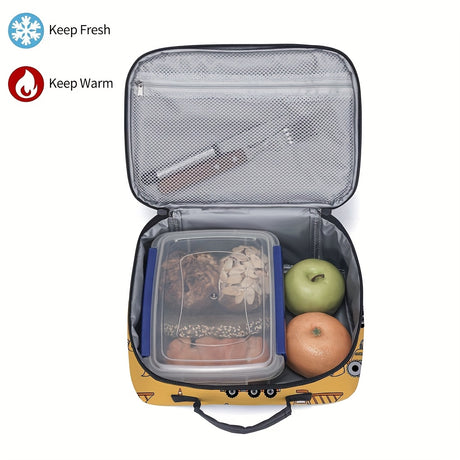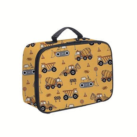 Excavator Print Pattern Double Shoulder Backpack, Boys' Large Capacity Yellow Polyester School Bag