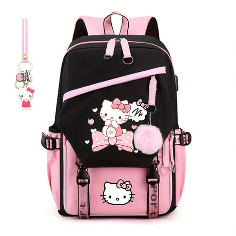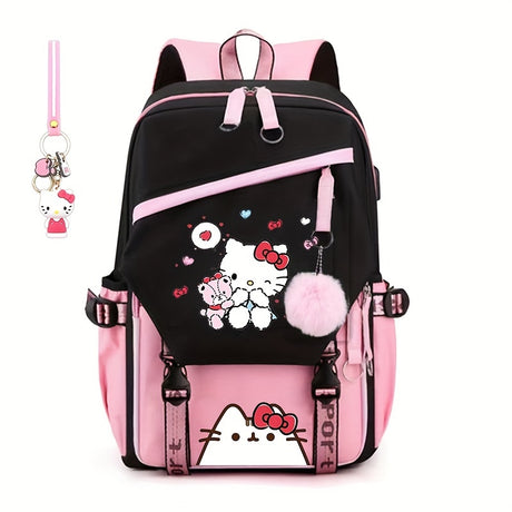 Sanrio Hello Kitty Backpack - Cute Nylon School Bag with Zip Closure, Fashionable Design