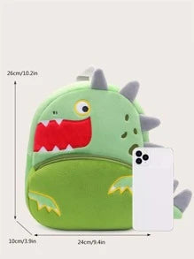 1pc Cartoon Big Mouth Green Dinosaur Plush Backpack For Kids, Suitable For Daily Use