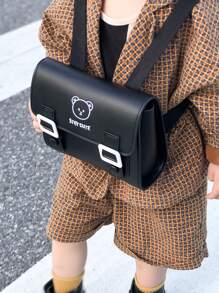 Cute Kids' Fashionable Pu Double Shoulder Kindergarten Backpack, Unisex Toddler School Bag