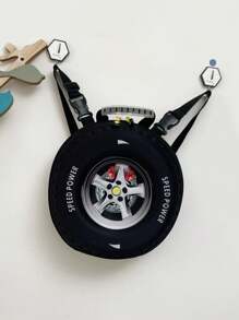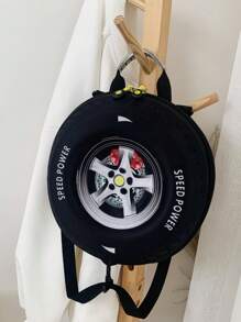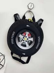 1pc Children's Cartoon Pvc Eggshell Tire Backpack With Zipper Casual Daypack