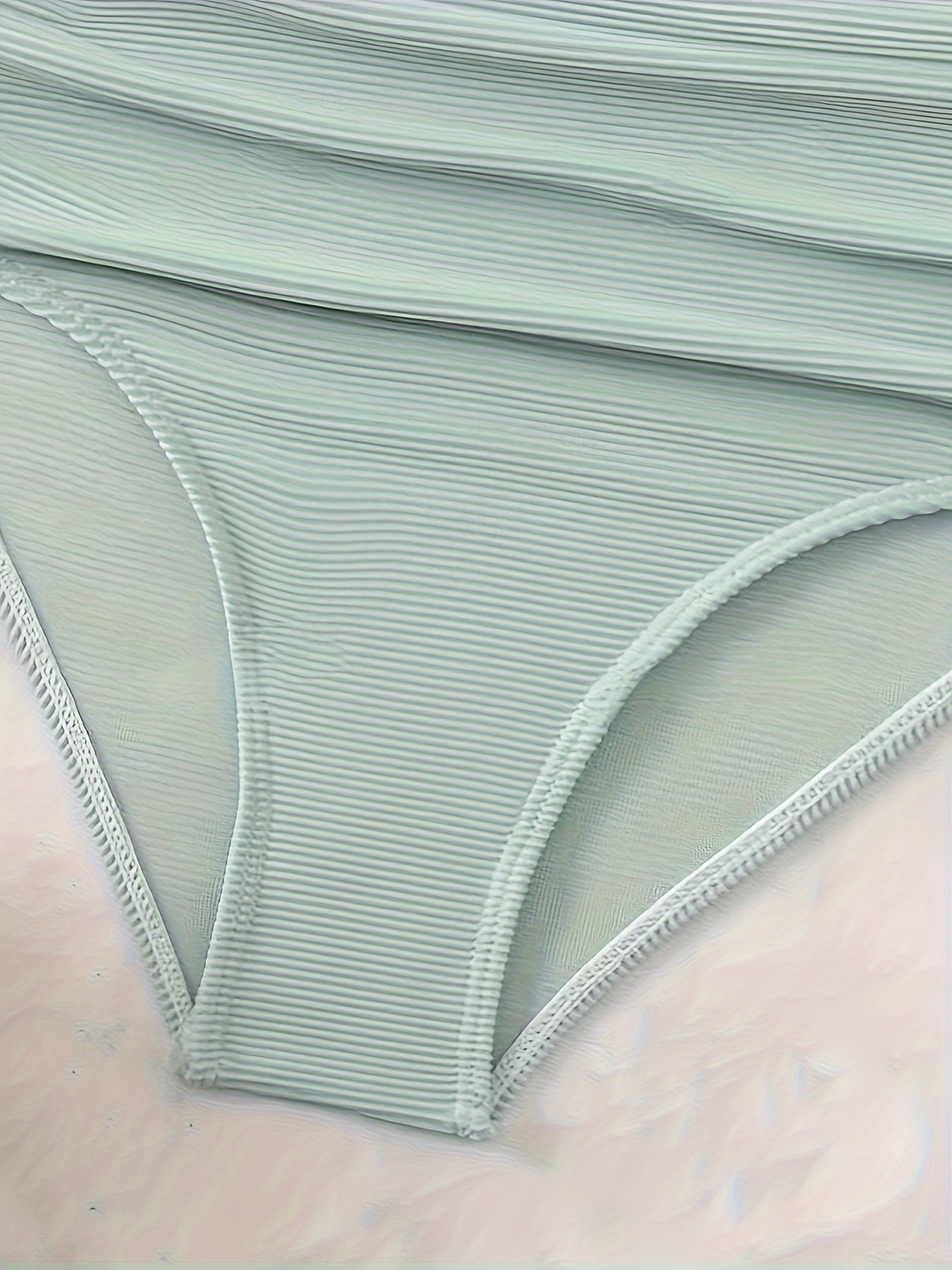 Elegant High-Waist Bikini Set with V-Neck Tie Detail - Stretchy, Non-Transparent Solid Color Swimsuit for Women