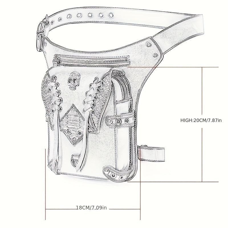 Chic Embossed Waist Bag Trendy Flap Belt Bag, Retro Cool Motorcycling Bag, Trendy Shoulder Bag