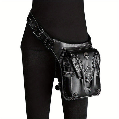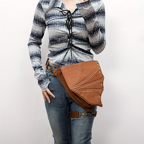 Punk Style Cool Flap Waist Bag, Chic Motorbike Bag, Phone Bag, Retro Belt Bag For Men Women
