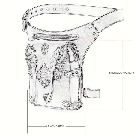 Chic Embossed Waist Bag Trendy Flap Belt Bag, Retro Cool Motorcycling Bag, Trendy Shoulder Bag