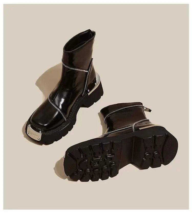 High Quality Black Shoes for Women Platform Boots Street Round Toe Ladies Shoes Non-slip Thick-soled Goth Boots Zapatos De Mujer