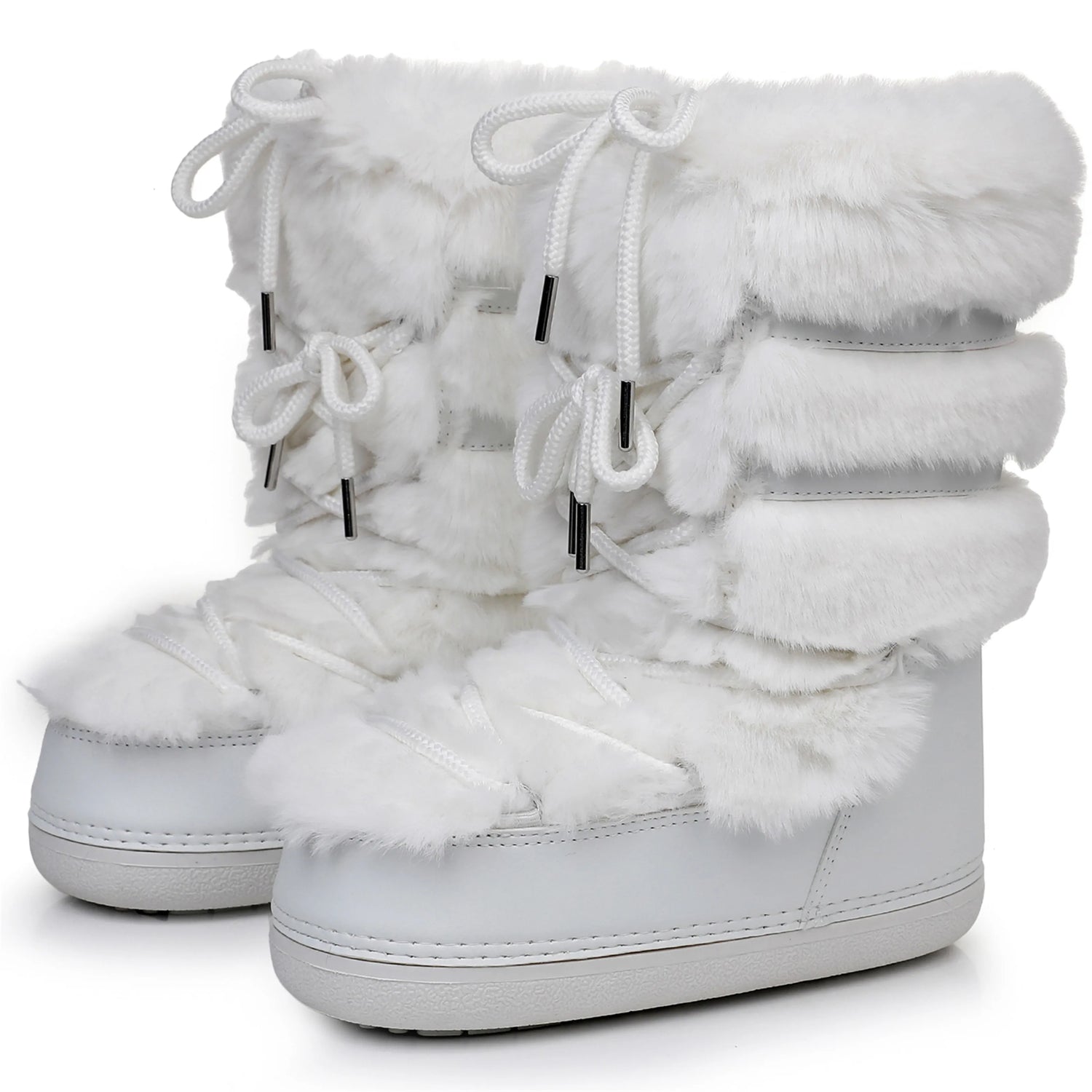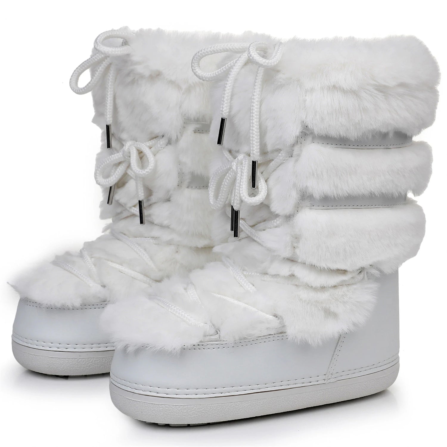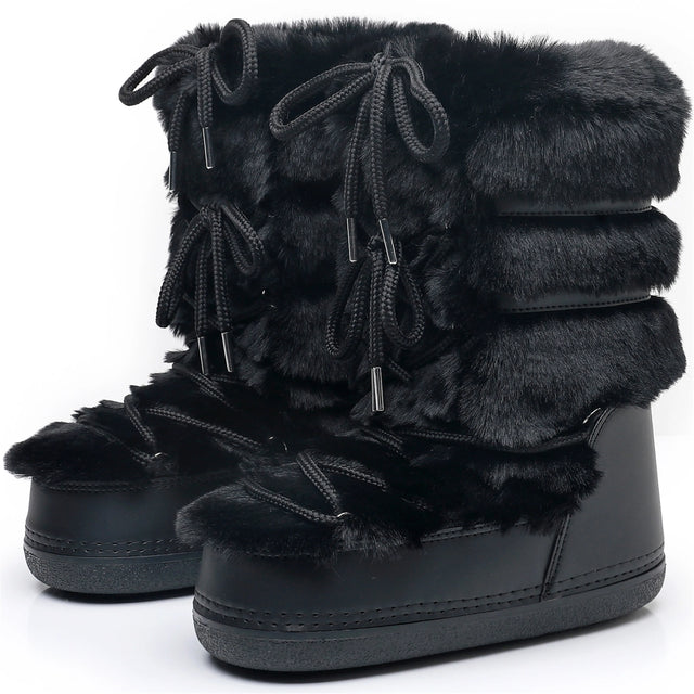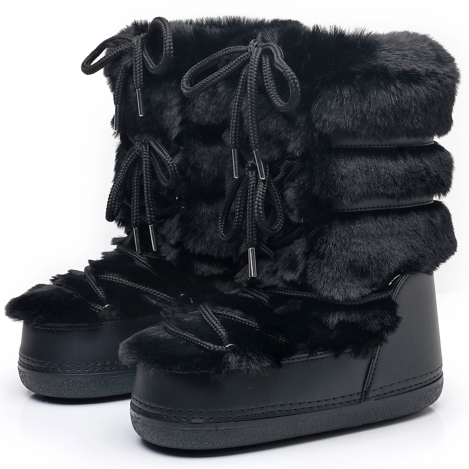 y2k Black Fur Boots for Women Snow Boots 2025 Winter Faux Fur Boots Fluffy Fuzzy Furry Faux Fur Boots Waterproof Mid-calf Boots