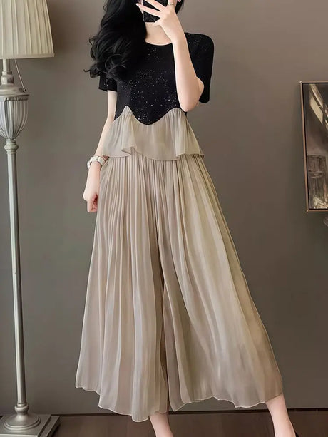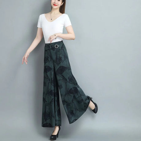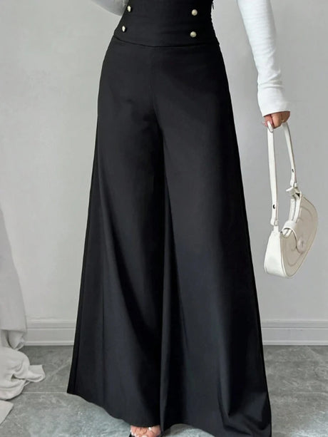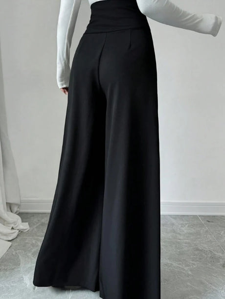 Women's Fashionable and Elegant Solid Color Wide-Leg Pants for Spring and Autumn, High Waisted Pants