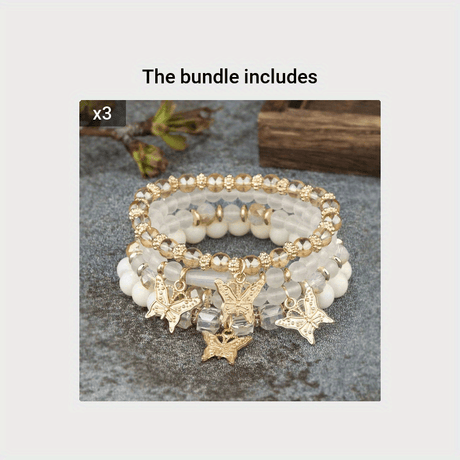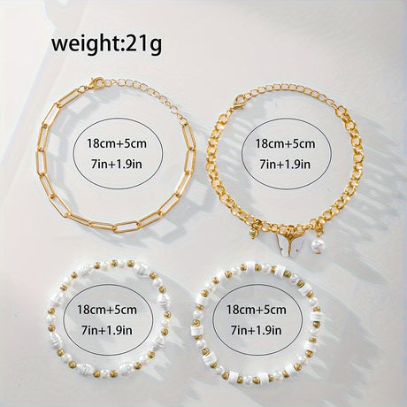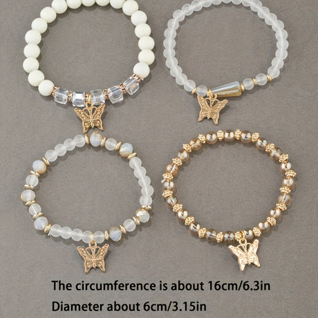 4pcs/set Bohemian Style Butterfly Charm Colorful Beaded Bracelets, Cute Hand Jewelry Gift For Girls