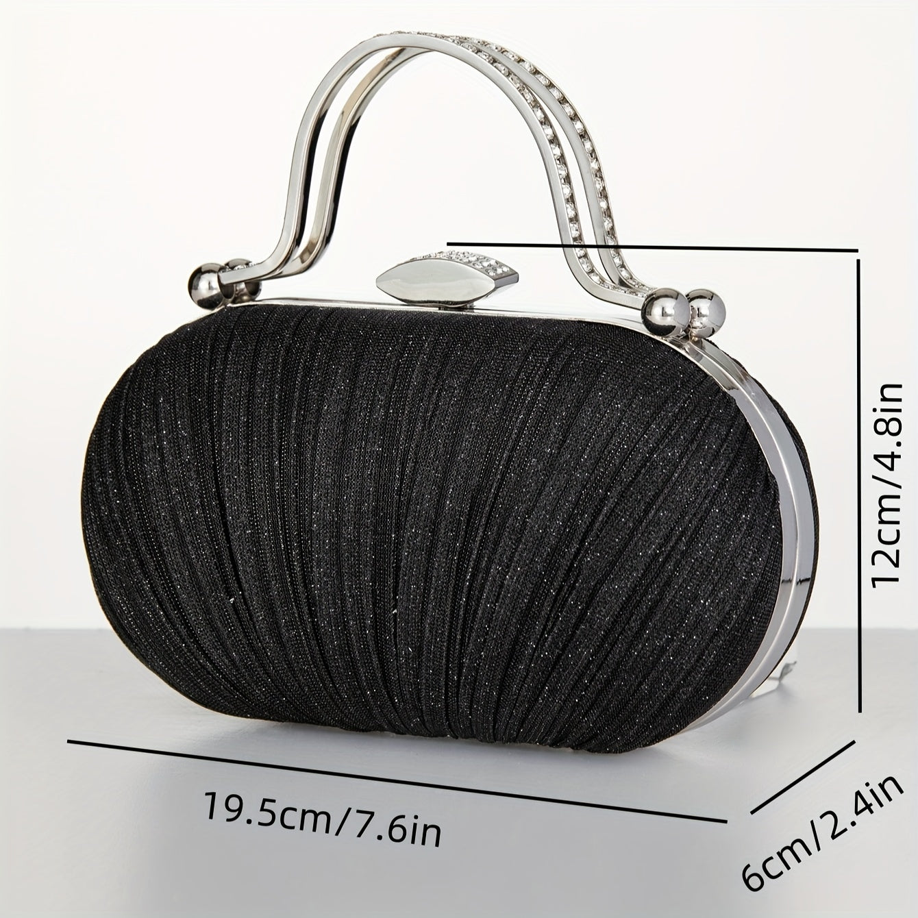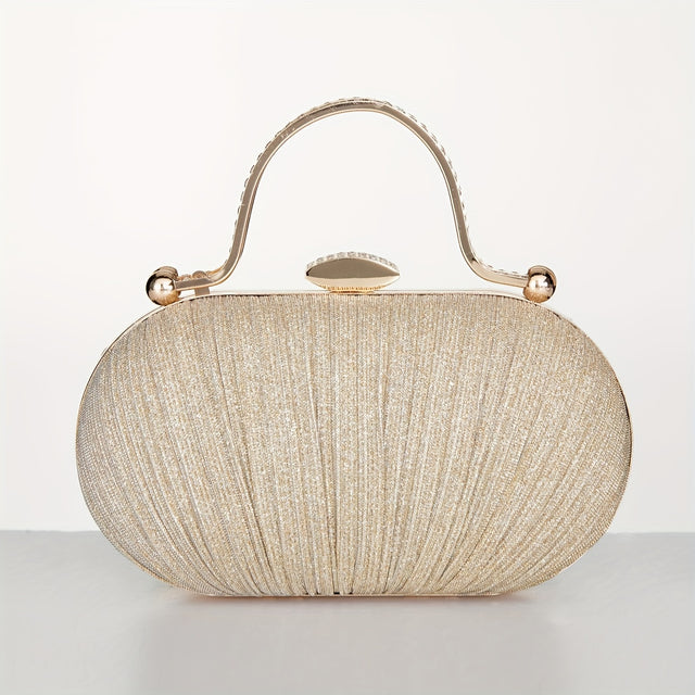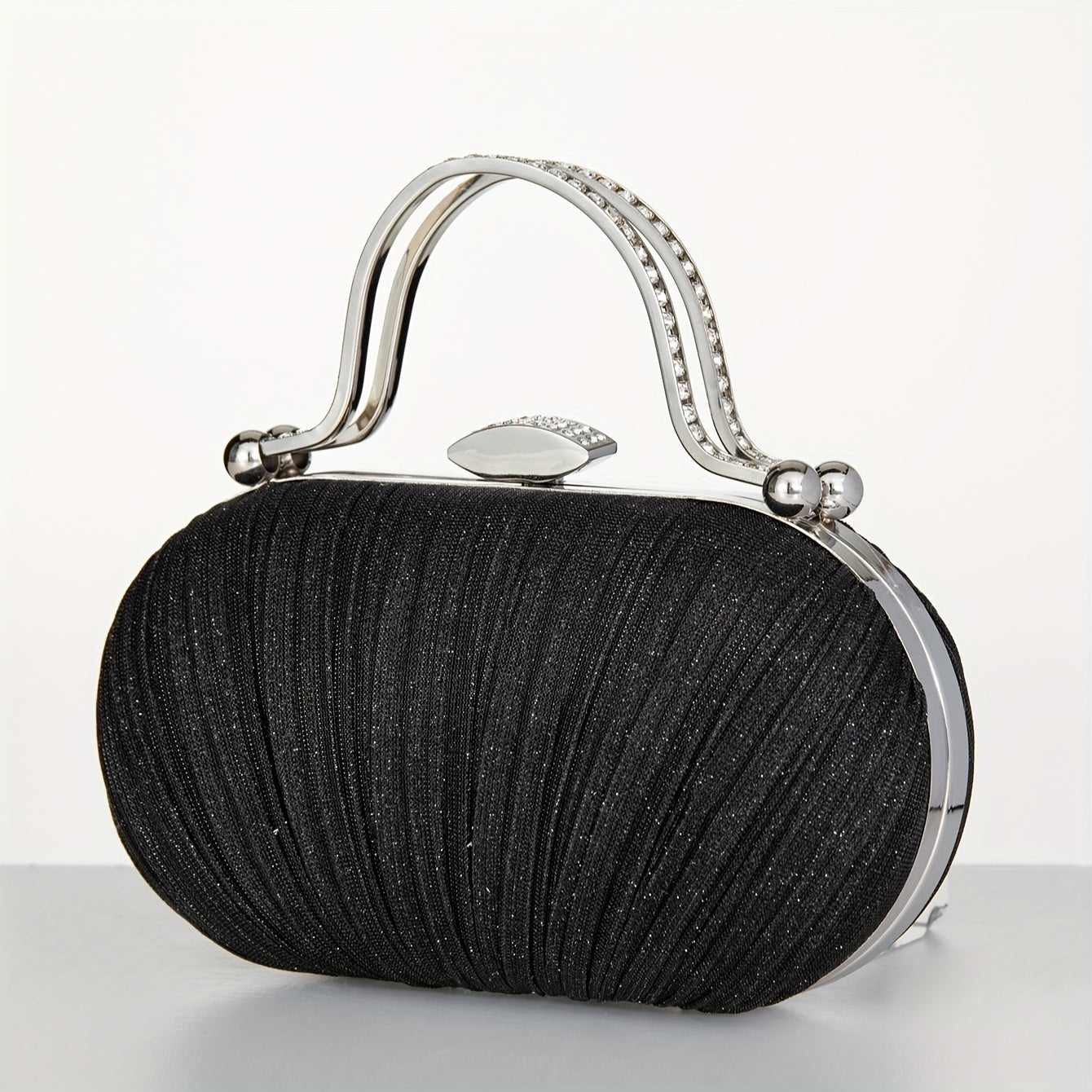 Sparkling Ruffled Clutch Bag - Shiny Top Ring Handle for Elegant Evening Wear - Perfect for Weddings, Parties, and Festivals