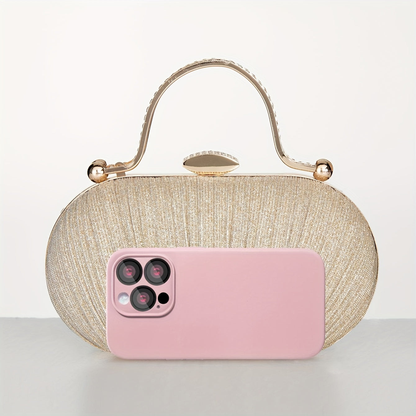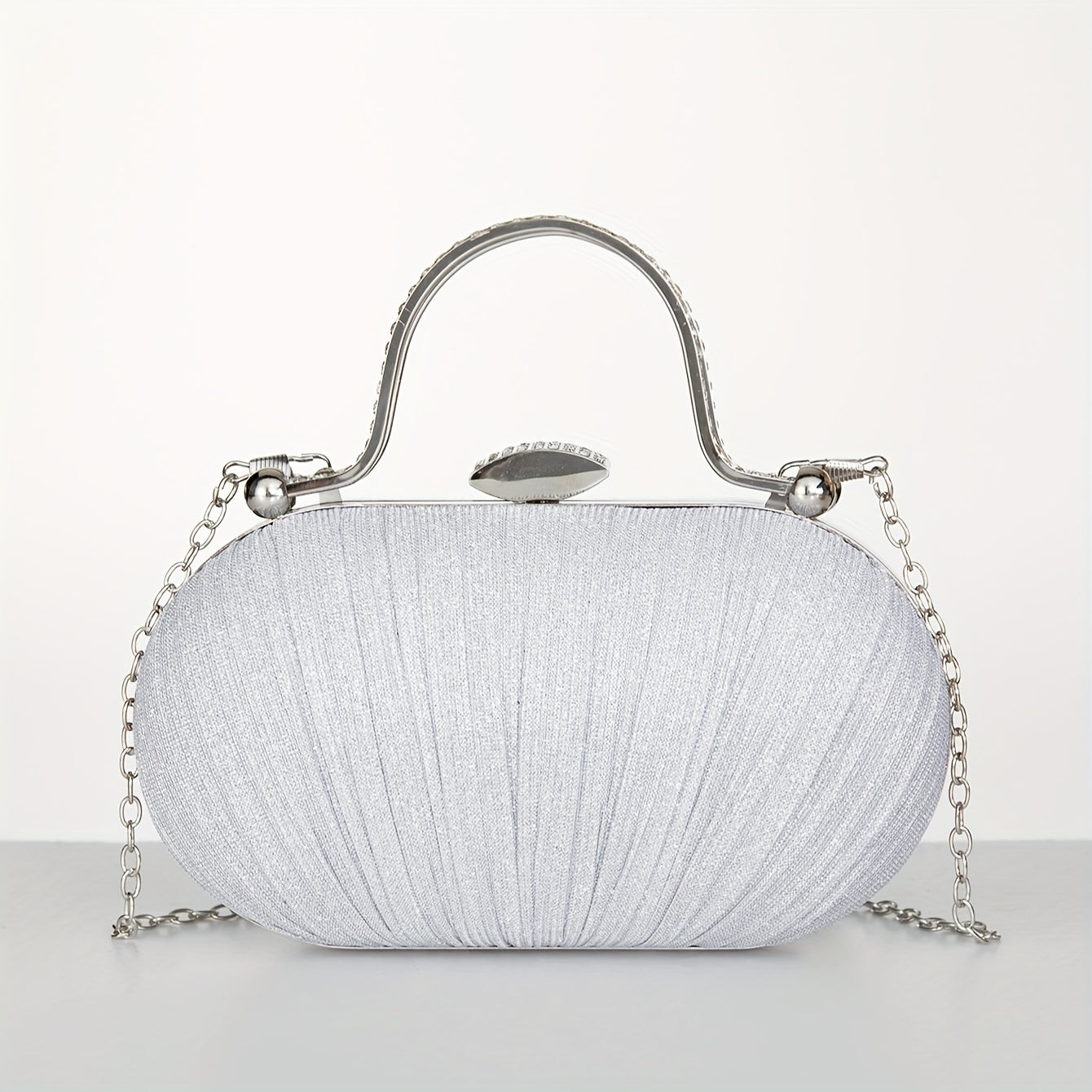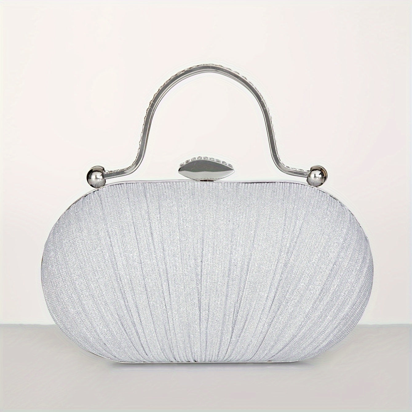 Sparkling Ruffled Clutch Bag - Shiny Top Ring Handle for Elegant Evening Wear - Perfect for Weddings, Parties, and Festivals