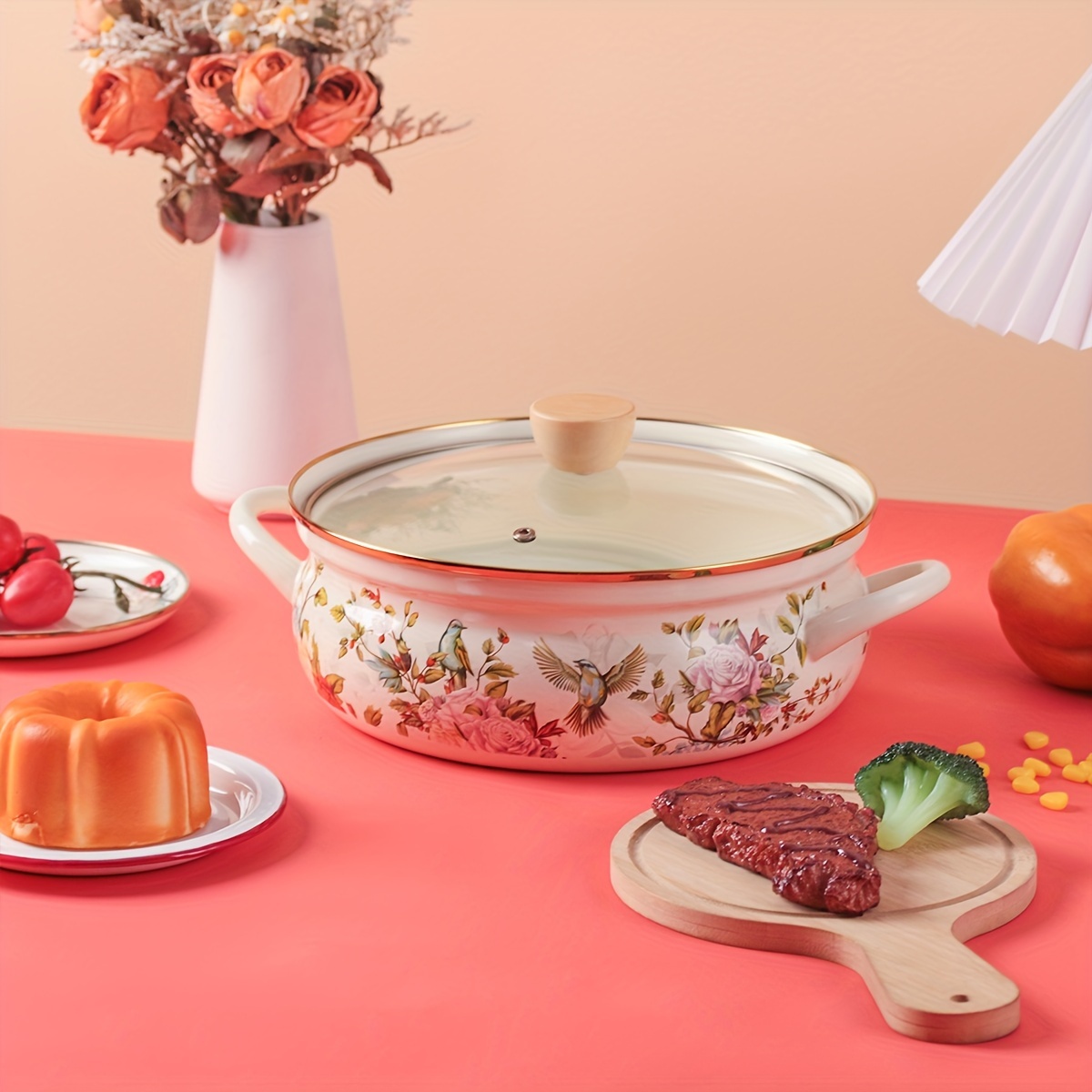 10.2" Versatile Enamel Cooking Pot - Non-Stick, Easy Clean For Seafood, Soup, Stew & More - Perfect For Home Kitchens, Restaurants & Outdoor Cooking - Flower Bird Seafood Pot is backordered and will ship as soon as it is back in stock.