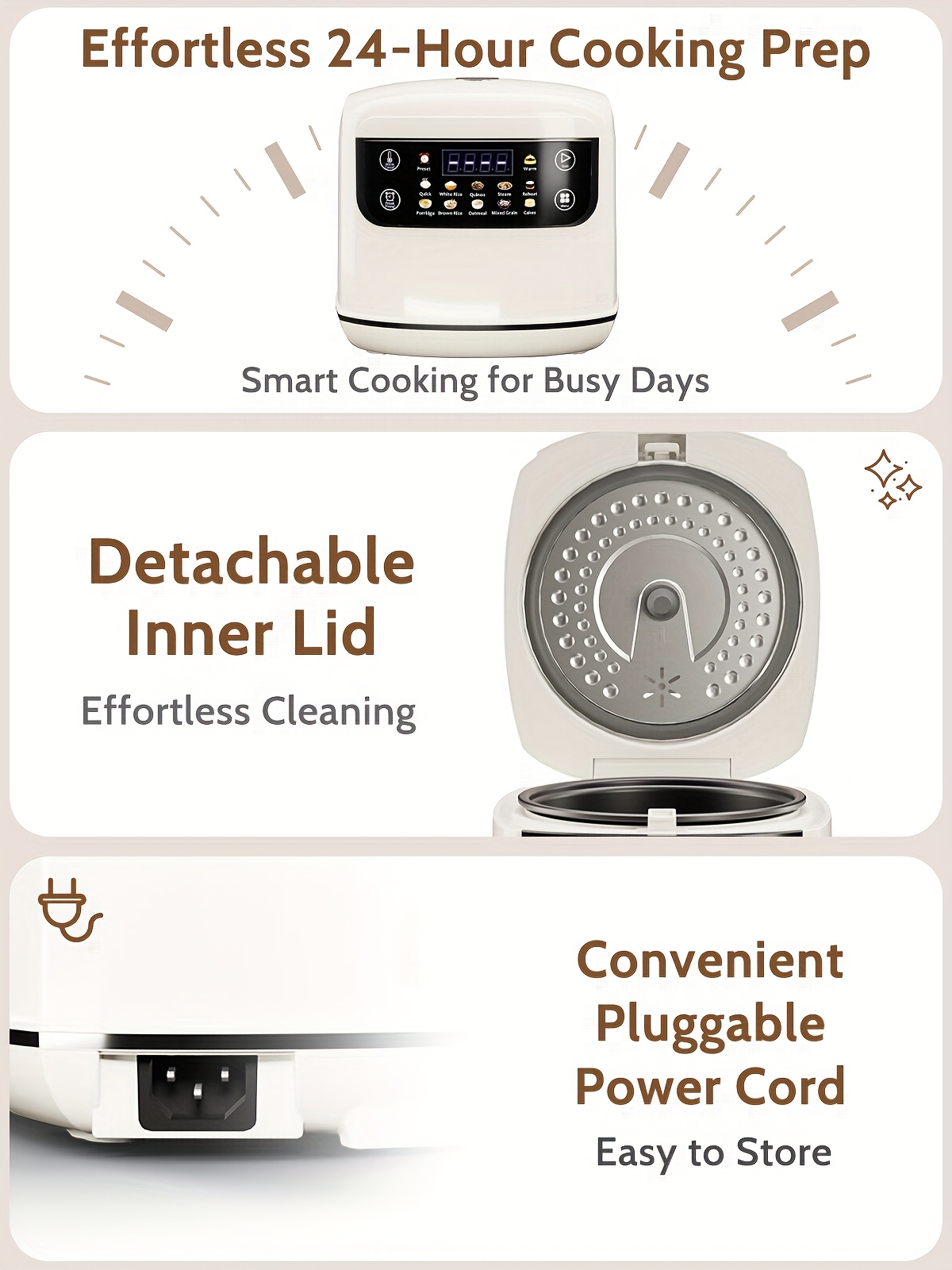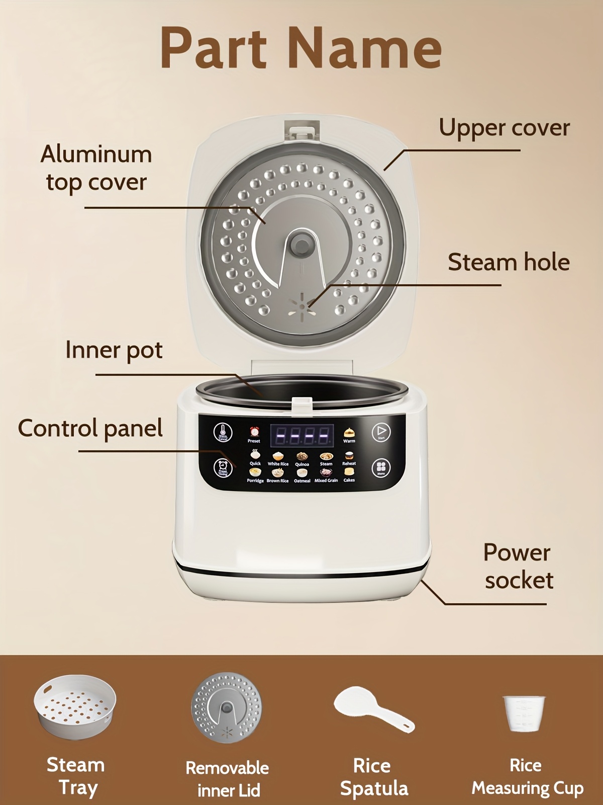 Bluebow 2L Mini Digital Rice Cooker - 10-in-1 Portable Multi-Function with Auto Presets, Non-Stick Inner Pot, Touch-Screen Controls, Delay & Keep Warm, White, Perfect for Home Kitchens, Sleek Modern Appliance | Durable Alumin