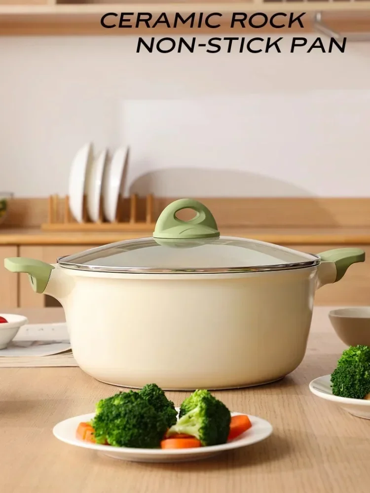 DONNOR Thickened Soup Pot Non Stick pan with Cover Household Cooking Pot Double Ear Stewing Pot Congee Cooking Pot Universal - Green / 28cm is backordered and will ship as soon as it is back in stock.