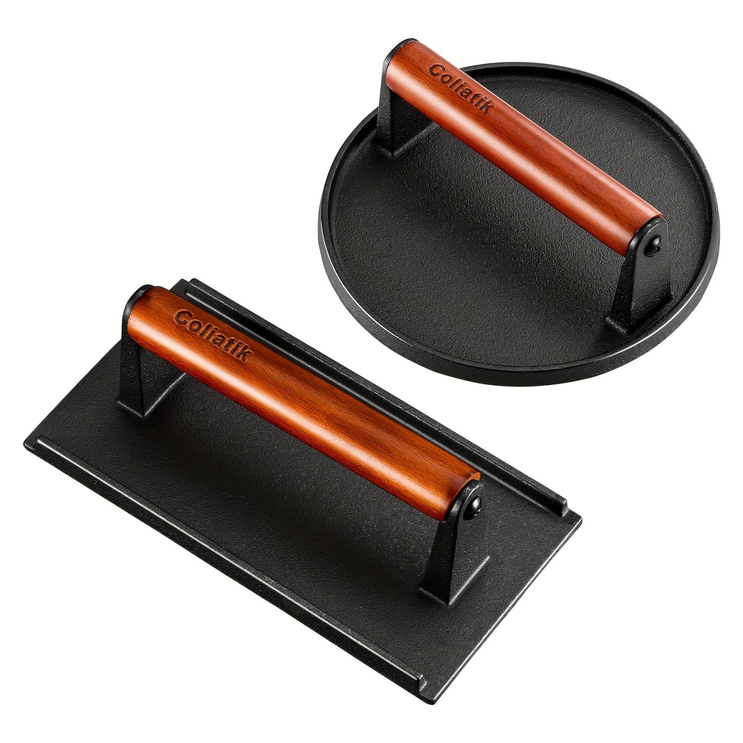 Heavy-Duty Cast Iron Burger Press Kit 7.08" Round & 8.3"X4.3"Rectangle Smash Presses with Wooden Handle-Perfect for Griddle, Grill, and Sandwich Cooking