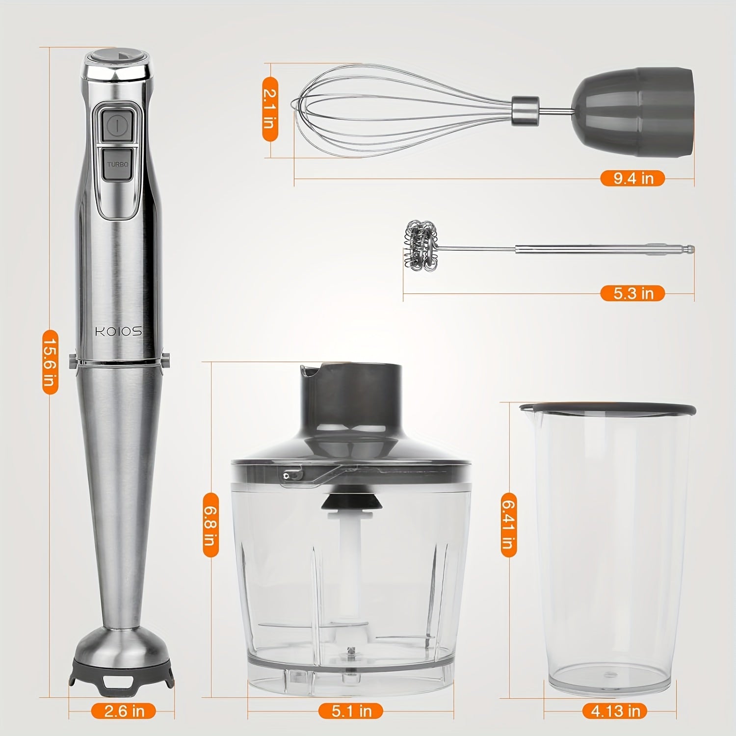 KOIOS Immersion Hand Blender, Stainless Steel Stick Blender with 12-Speed & Turbo Mode 1100W Motor, 5-in-1 Handheld Blender with 600ml Mixing Beaker with Lid, 500ml Chopper, Whisk, Milk Frother - stainless steel gray is backordered and will ship as soon as it is back in stock.