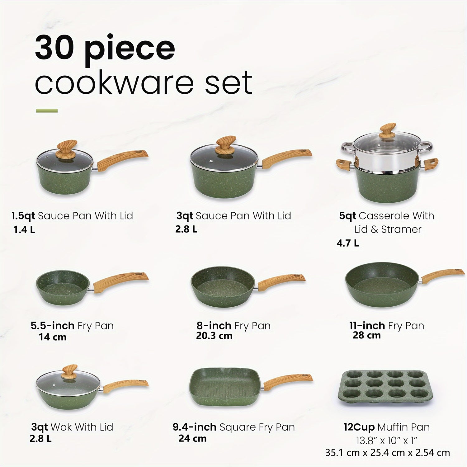Mix Patio Pots And Pans Set Nonstick, 12/17/30 Pieces Induction Kitchen Cookware Set, Granite Coating Cooking Pans Set (Black, Green)