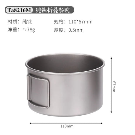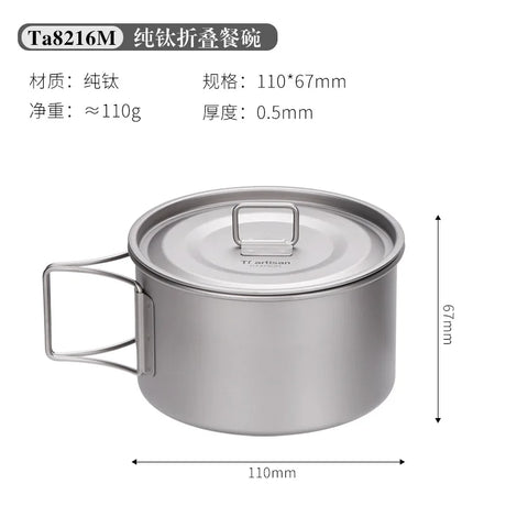 Camping Titanium Cooking Pot Bowl Cup Multi Use Ultralight Folding Handle 450ml 600ml