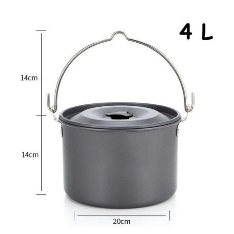 4L Outdoor Hanging Pot, Camping Picnic Large Soup Pot, Portable Cookware, Firewood Cooking Pot