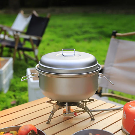 Camping Titanium Cooking Pot 2L Ti Cooking Steamer Ultralight Folding Handle