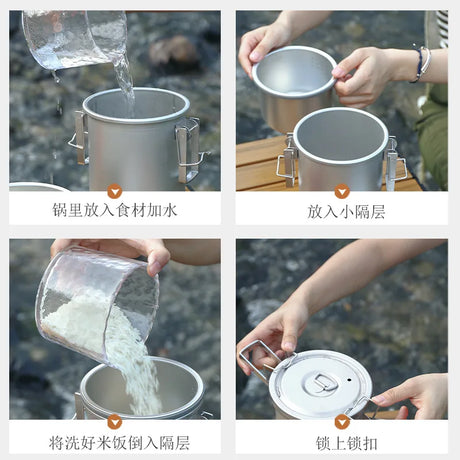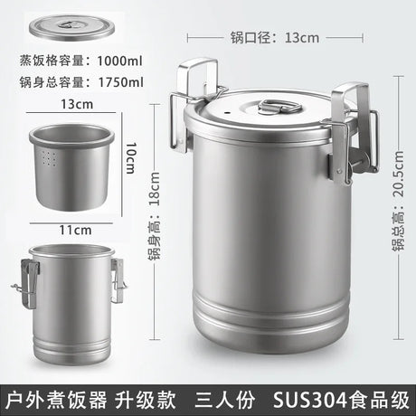 Camping Steel Cooking Pot Steam Pot Noodle Rice Cooker Combine Set