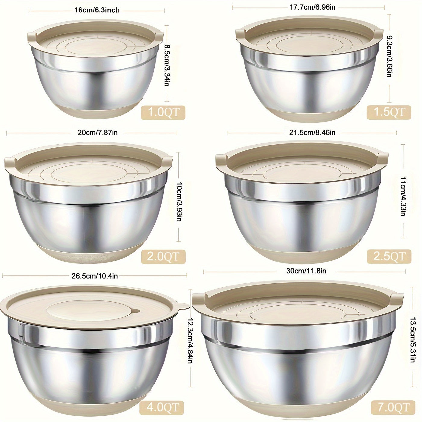 Mixing Bowls With Airtight Lids Set, 26PCS Stainless Steel Khaki Bowls With Grater Attachments, Non-Slip Bottoms & Kitchen Gadgets Set, Size 7, 4, 2.5, 2.0, 1.5, 1QT, Great For Mixing & Serving