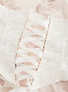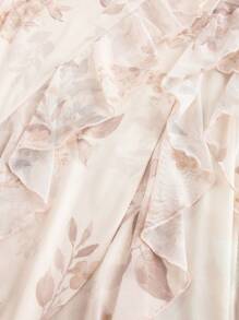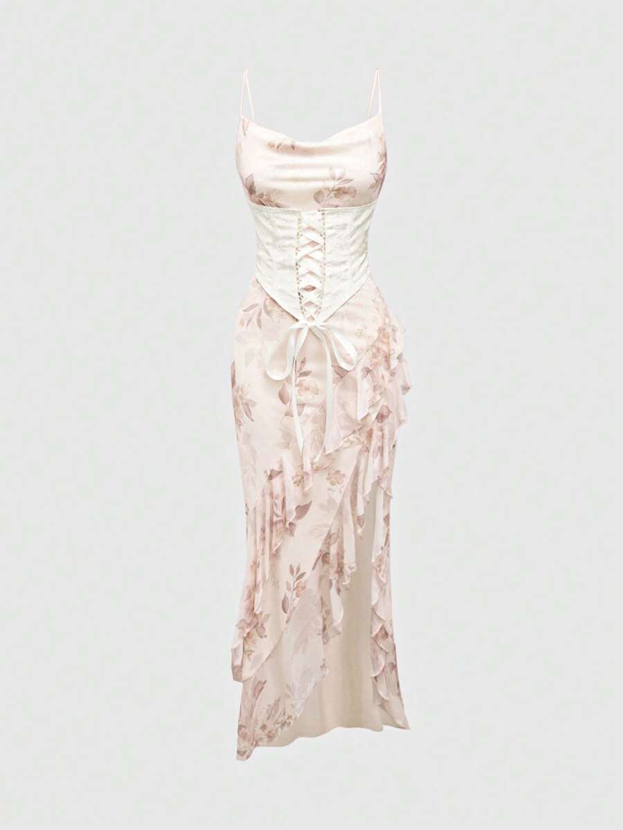 ROMWE Kawaii Women's Floral Print Lace-Up Ruffle Strap Dress