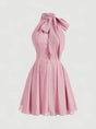 Pink Ribbon Bow Tie Strap Neck Romantic Dress