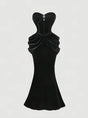 Women Black Vintage Elegant Ruched Fitted Party Dress,Holiday Dress, Dress,Black Velvet Dress,New Years Outfit, New Year Dress