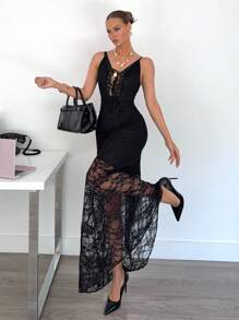 Siren Gaze Summer New Black Lace Elegant Long Dress Female Elegant Lace Long Dress, Sexy Elegant Perspective Lace Suspender Dress, Black Long Dress Women Dresses Birthday