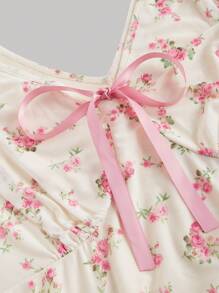 ROMWE Kawaii Women's Floral Print Lace-Up Ruffle Strap Dress