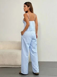 Flirla 2pcs/Set Women's Casual Striped Cami Dress Summer Outfit