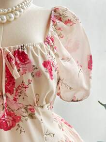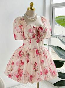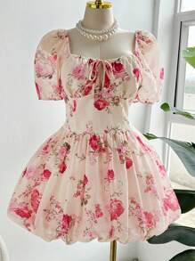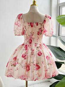 Franclia Elegant Bud-Sleeve Square Neck Short Shift Dress