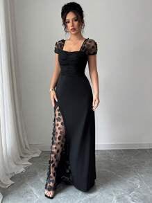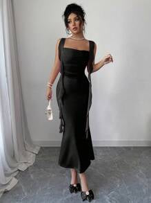 Elenzga Summer Vacation Party Jacquard Mesh Trim Fitted Dress