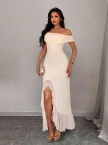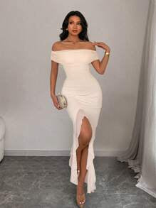 Elenzga Multi-Way Wear Shoulder Exposing Bodycon Dress, Elegant And Romantic Maxi Women Outfit