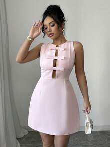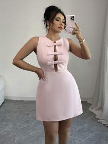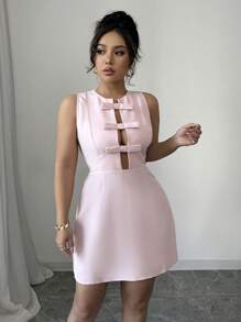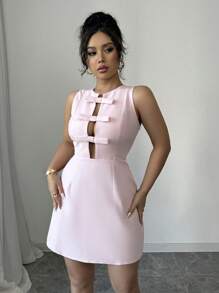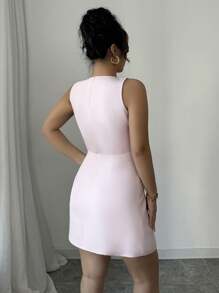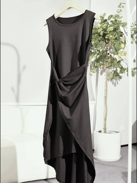 Elegant Women's Summer Dress: Twist Asymmetrical Hem Crew Neck Sleeveless Dress for Women