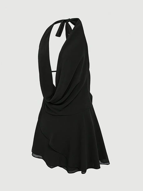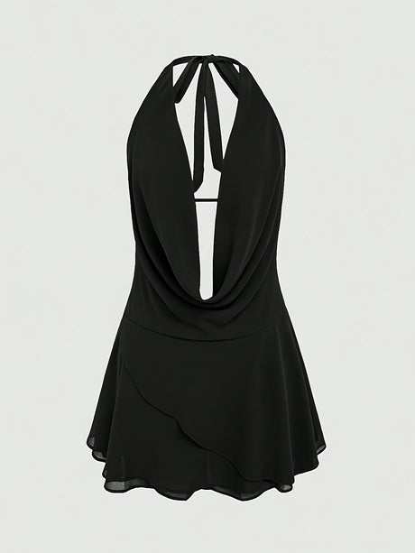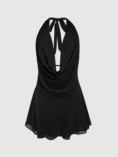 Elegant Sleeveless Backless Pleated Hollow Gold Party Dress