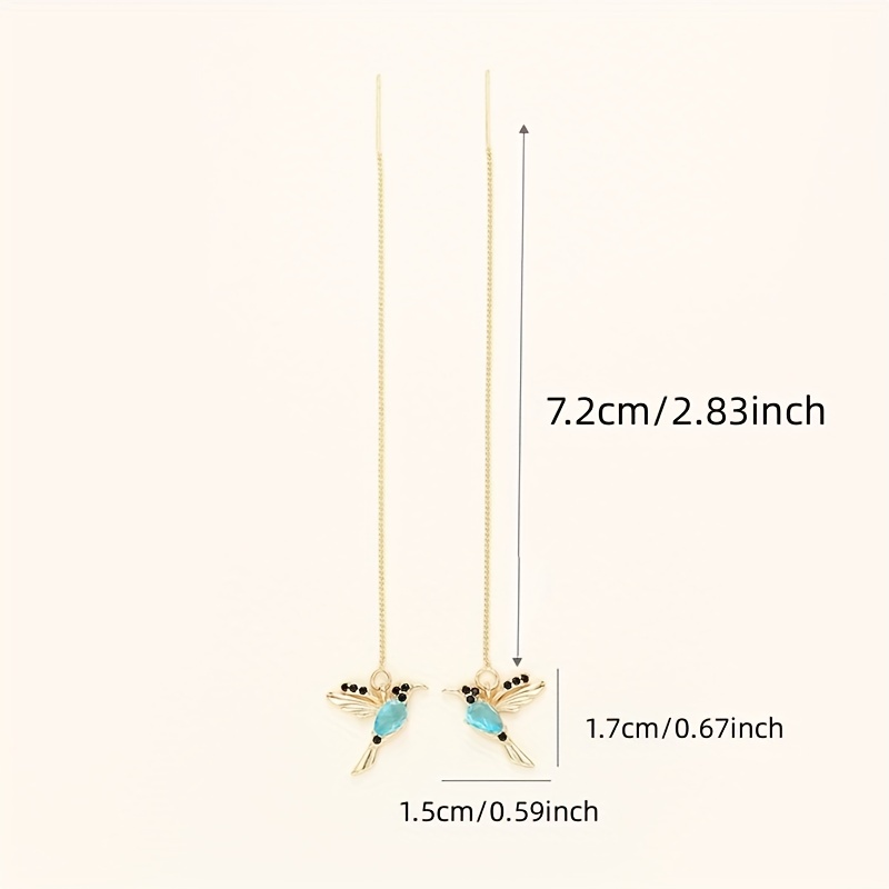 Elegant Dangle Birdie Ear Line Stud Earrings with Zirconia Tassels - Golden Earrings for Women, Perfect for Parties and Weddings, READKISS - golden & blue is backordered and will ship as soon as it is back in stock.