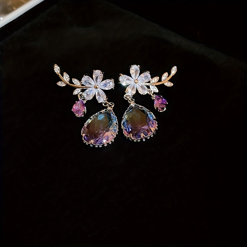 Flower & Teardrop Shape Drop Dangle Earrings Elegant Jewelry Gift For Women - Purple is backordered and will ship as soon as it is back in stock.