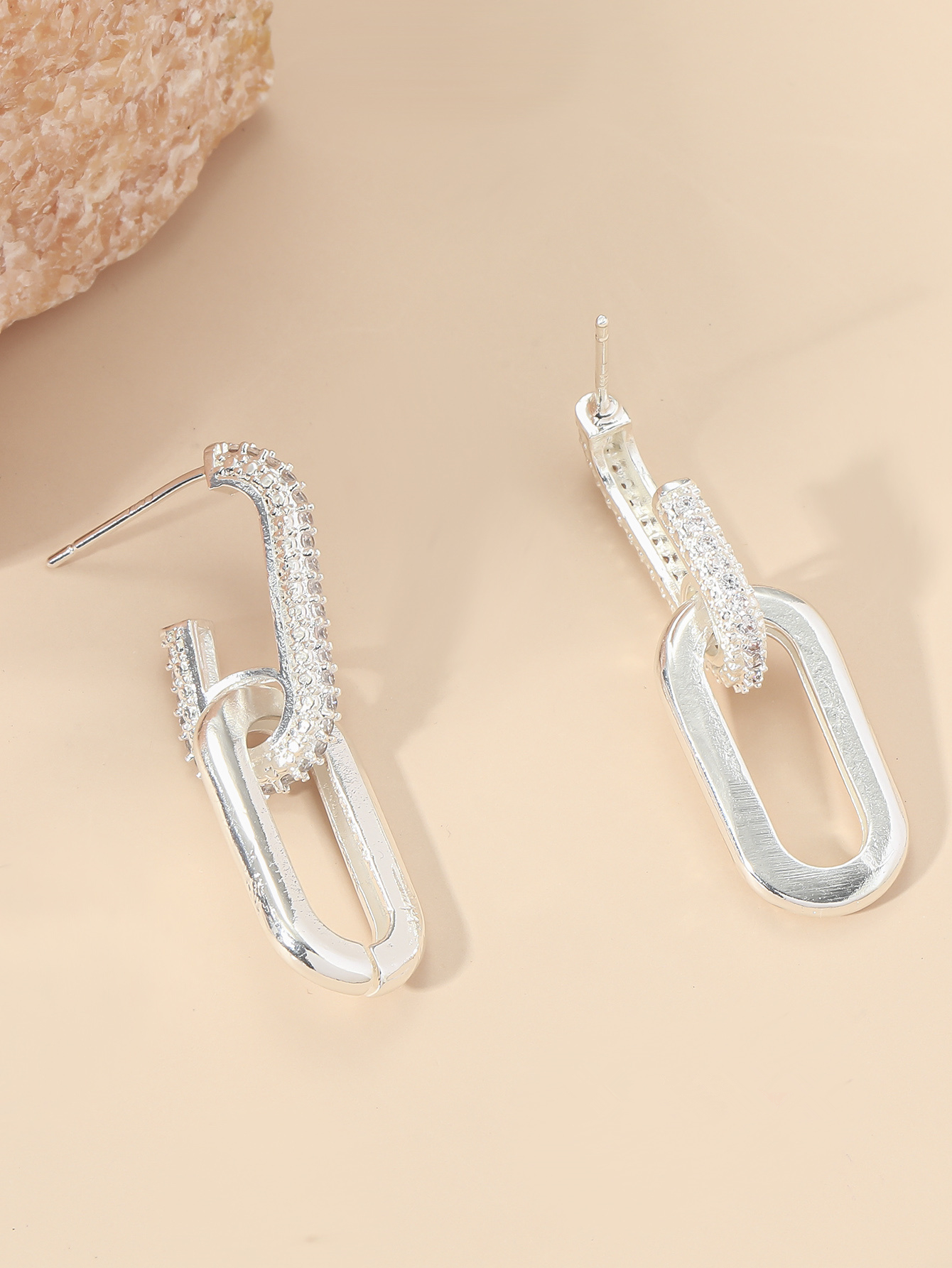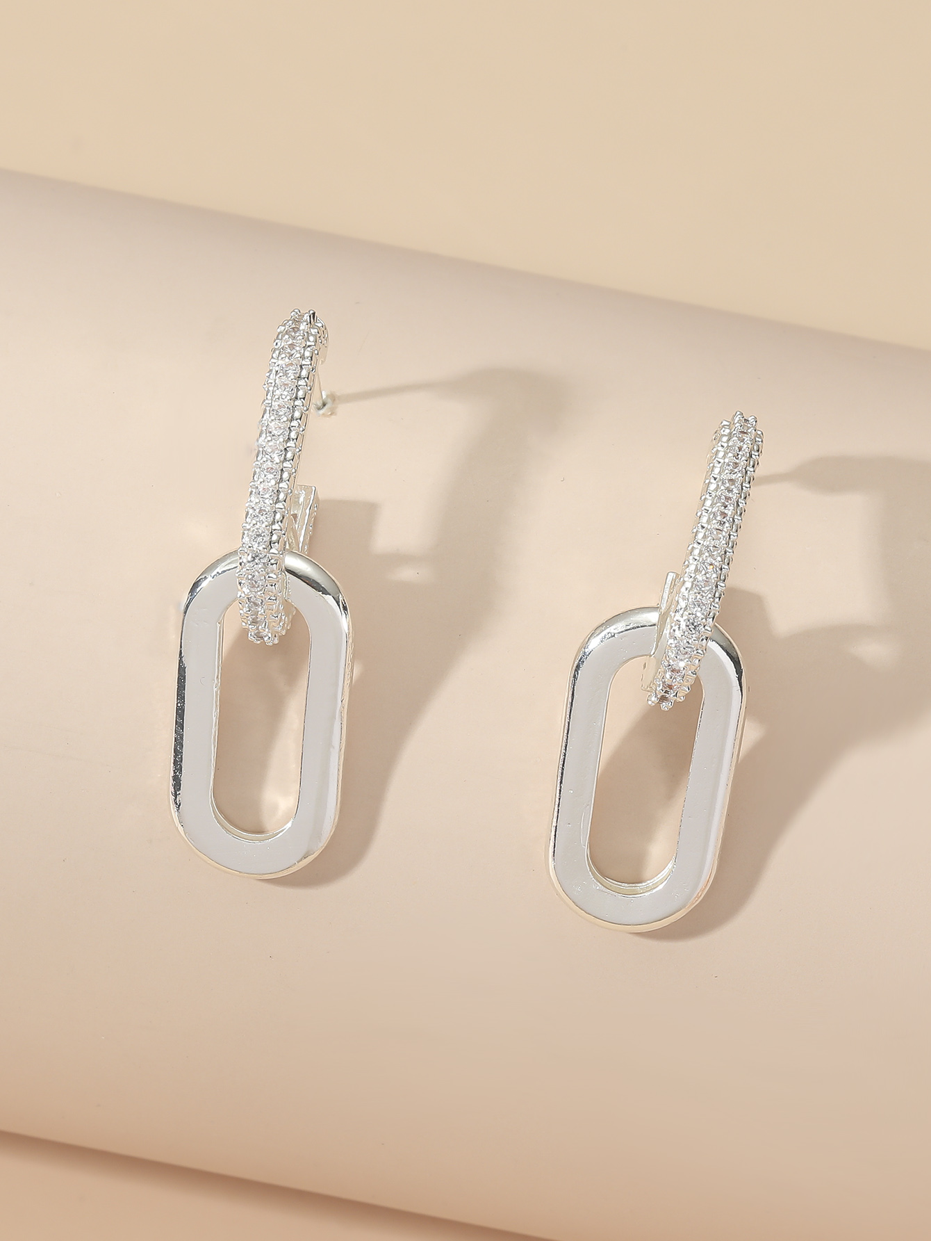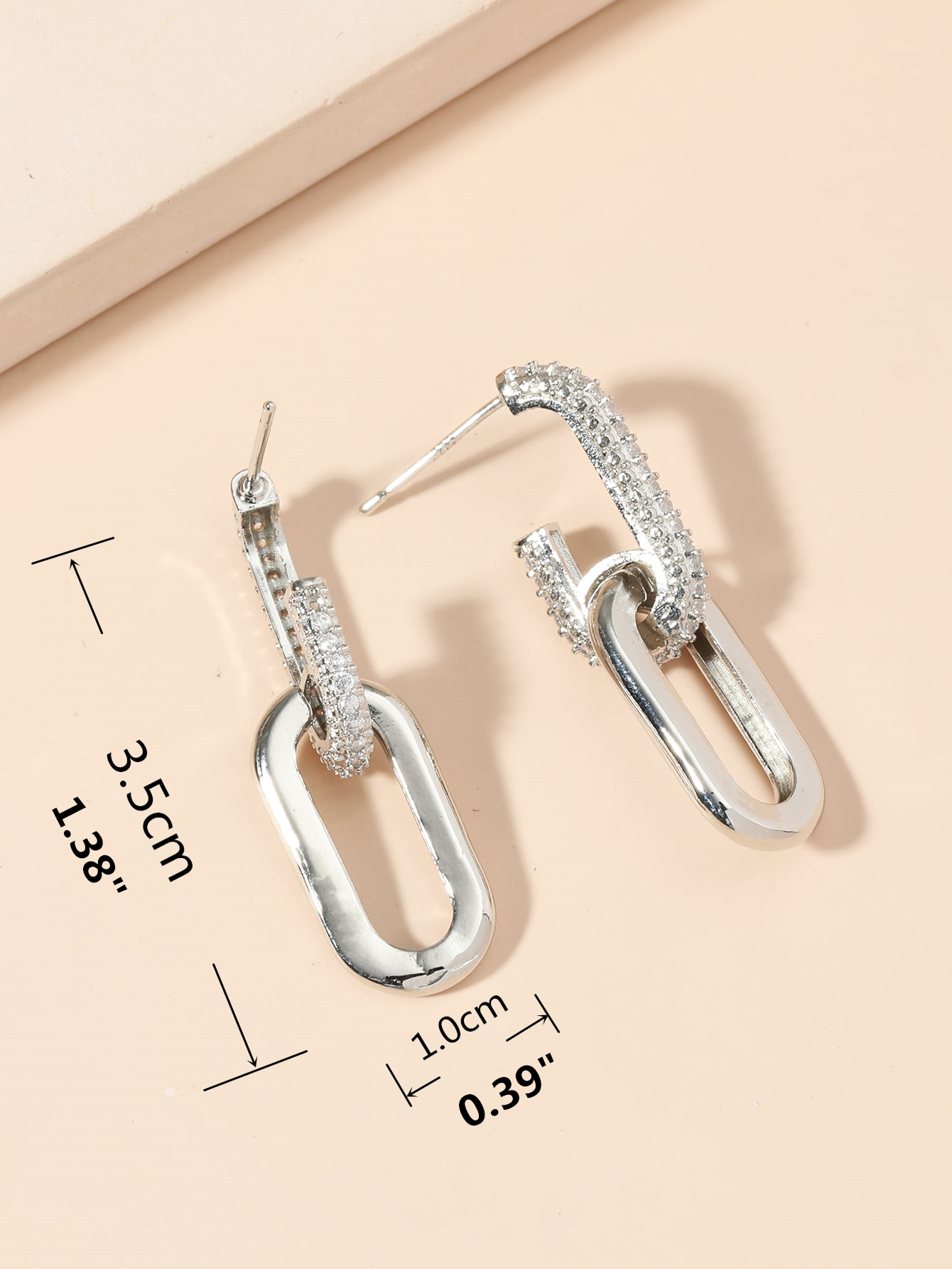/ Silvery Dangle Earrings With Shiny Zircon Decor Elegant Minimalist Style Copper Plated Jewelry Daily Casual