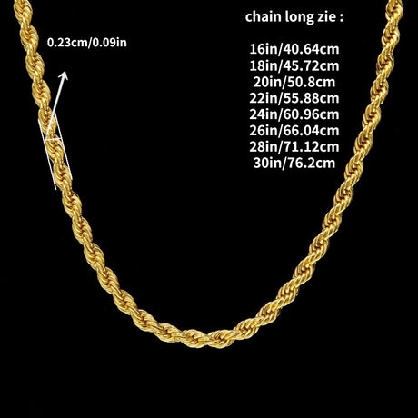 1PC Yellow Gold Plated Fried Dough Twist Chain Necklace