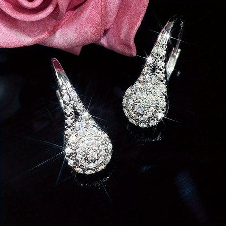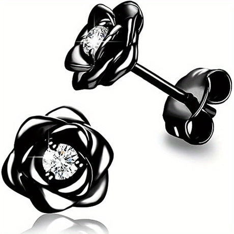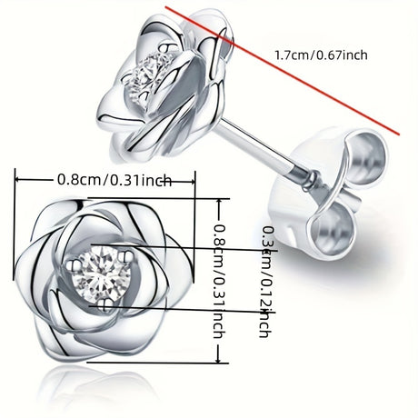 Shiny Zircon Flower Stud Earrings - Delicate Daily Jewelry for Women