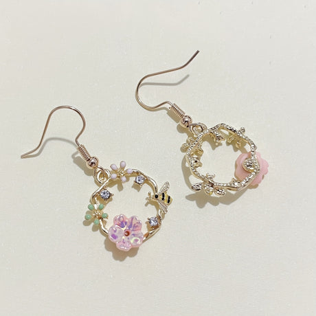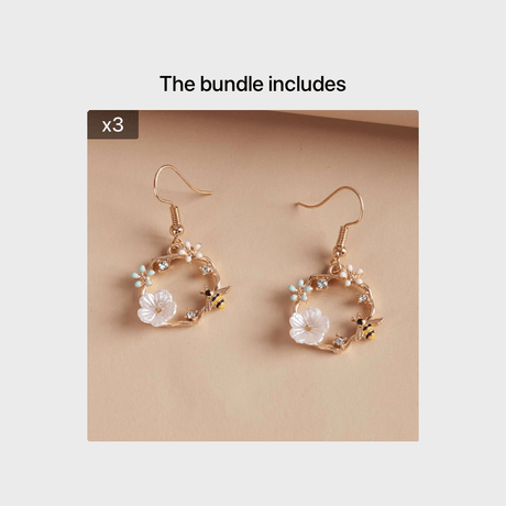 Dongda Super Fairy Quality Silvery Needle Bee Garland Shell Flower Stud Earrings