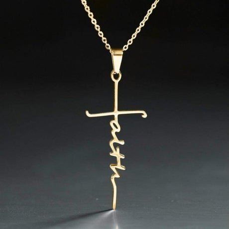 1pc New Stainless Steel Faith Word Church Prayer Religious Pendatn Necklace