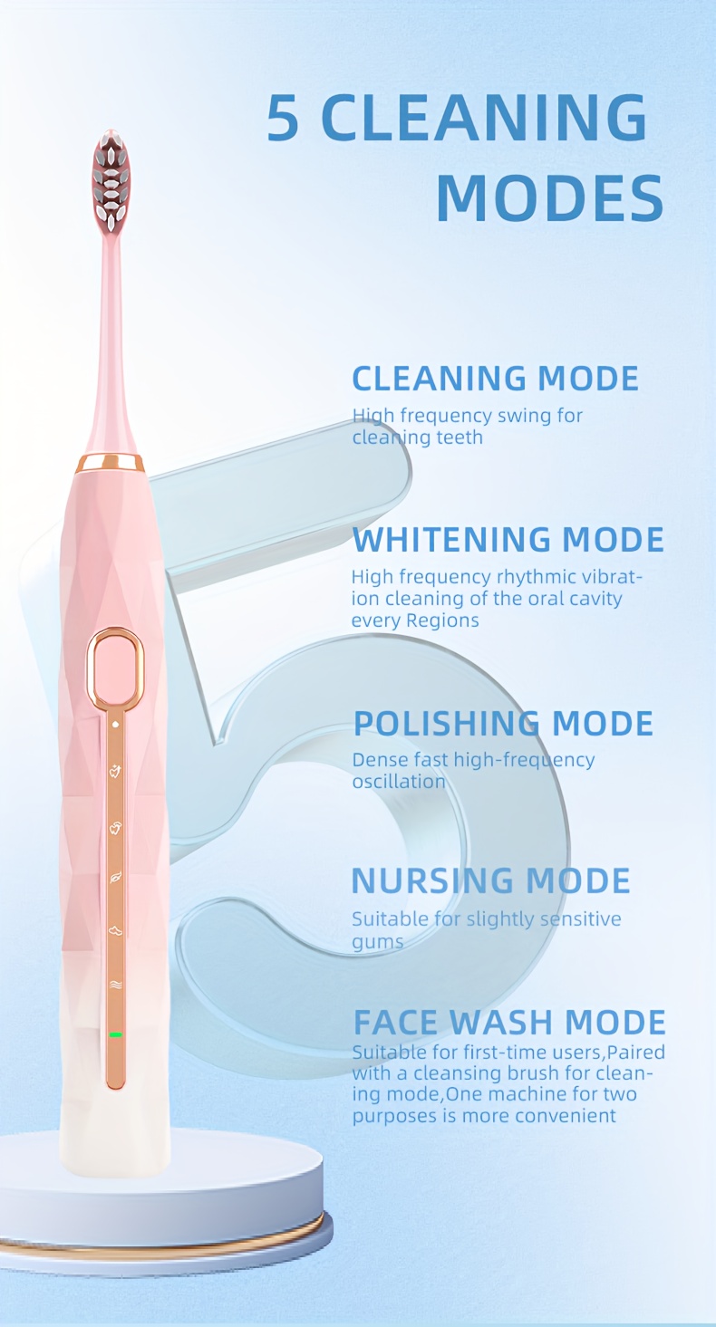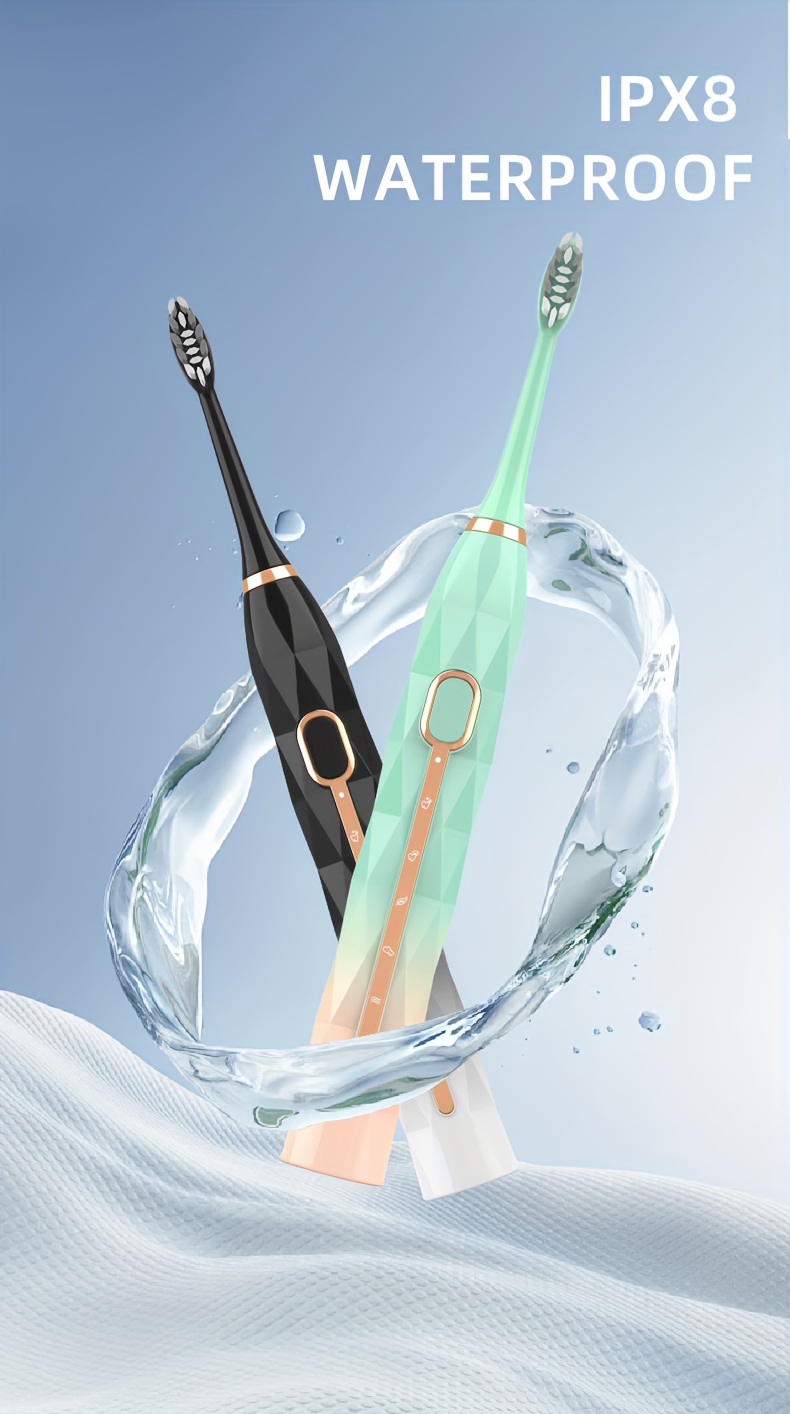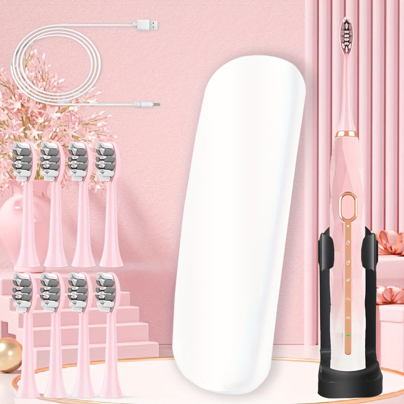 Acoustic Electric Toothbrush IPX8 Waterproof USB Rechargeable Couple Replaceable Metal Shaft Adult Men And Women With Toothbrush Seat With Suitcase Rechargeable Toothbrush Intelligent Timer 8 Replacement Brush Head 5 Colors