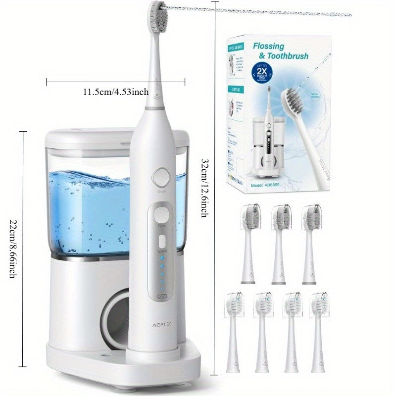 AGPTEK Professional Flossing Toothbrush, Electric Toothbrush with Water Flosser Combo, 5 Modes Teeth Cleaner, 5 Water Pressure Oral Irrigator, 16.91oz Water Tank for Home, Portable Tube for Travel